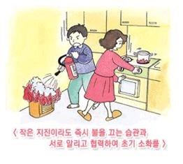 가족은 물론 이웃사람들과도 서로 협력해서 초기 소화를 하는 것이 큰 화재를 막기 위하여 극히 중요한 일입니다.