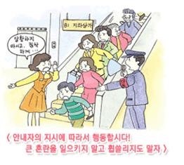 - 백화점이나 지하상가 등 많은 사람들이 모이는 장소에서 무엇보다 두려운 것은 큰 혼란의 발생입니다. 이러한 장소에서는 종업원이나 경비원 등 안내자의 지시에 따라서 행동하도록 합시다.