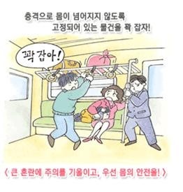 - 진도 5이상의 지진이 발생하면 전철은 일시적으로 운행이 정지됩니다. 정차했다고 해서 서둘러 밖으로 나가면 다칠 위험이 있습니다.