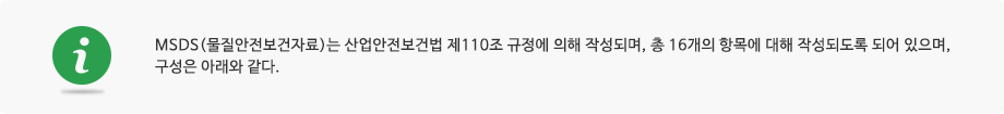 제조자정보 : 물질안전보건자료의 내용과 관련하여 요구할 사항이 있을 때 연락하도록 전화번호까지 제공하고 있다.